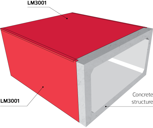- LM3001 waterproofing membrane is applied with LM 3S adhesive.