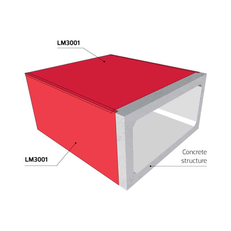 - LM3001 waterproofing membrane is applied with LM 3S adhesive.